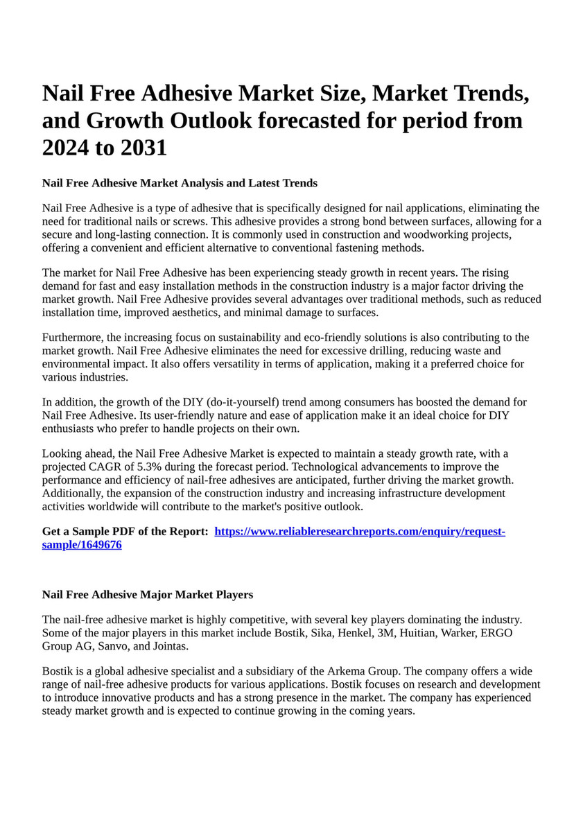 Source : www.facebook.comReportprime Nail Free Adhesive Market Size, Market Trends, and
